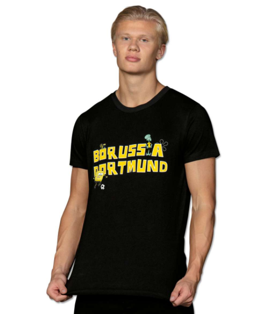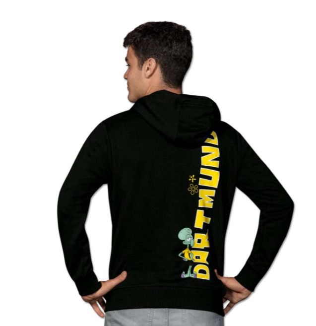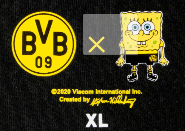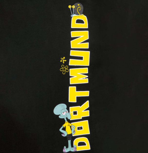 多特蒙德和海绵宝宝多尔蒂联合推出了一些生活服,包括连帽衫和t恤。多特蒙德的衣服主色是黄黑色,上面有海绵宝宝图案。