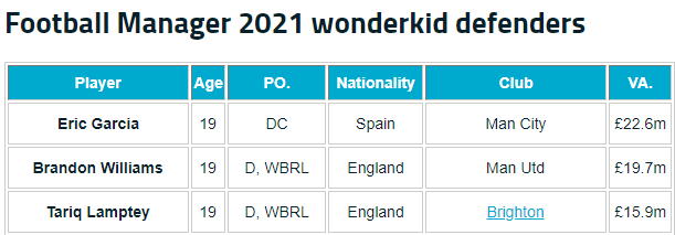 后卫位置身价最高的二位分别是曼城的埃里克-加西亚和曼联的布兰登-威廉姆斯。