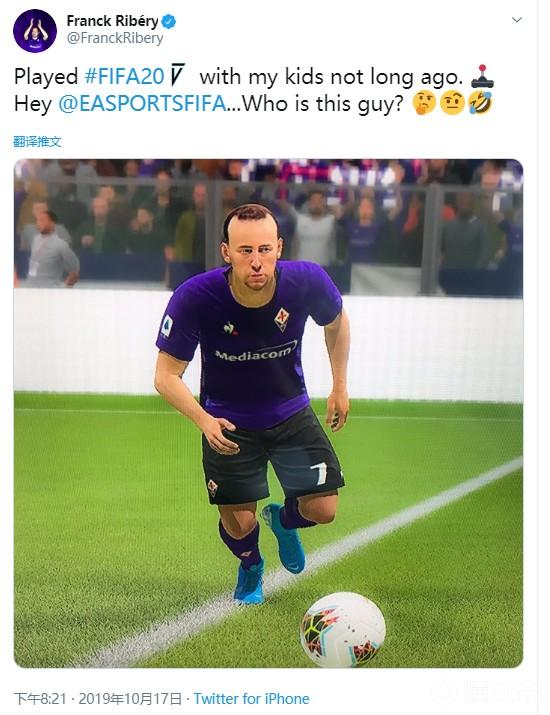 老将里贝里在推特中忍不住这样吐槽道:“我和我的孩子们不久前玩了FIFA20这款游戏。嗨,EA SPORTS公司……这个家伙是谁啊?”