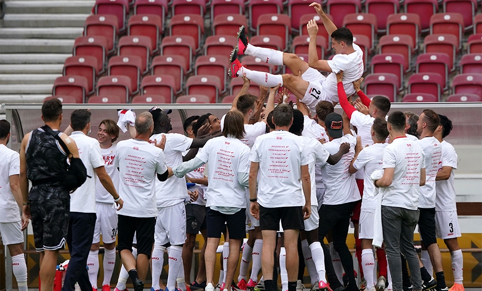 当主裁判施泰因豪斯吹响全场比赛结束的哨声,斯图加特本赛季的德乙征程落下大幕,球队传奇马里奥·戈麦斯也完成了他职业生涯的最后一战。队友们身穿印有他号码和名字的纪念衫,将他高高抛起。就像是恋人之间的承诺,拥有西班牙血统的戈麦斯终是履下了他与斯图加特之间的浪漫约定:“我最大的愿望就是在斯图加特结束自己的职业生涯。”