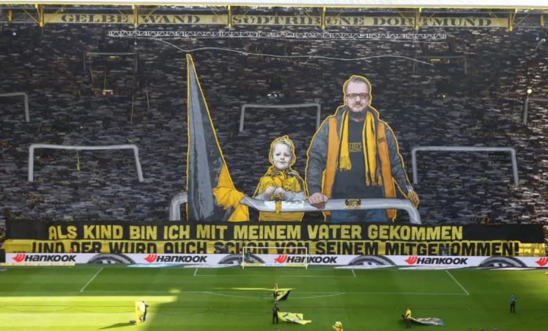 三月底,多特蒙德在主场迎战沃尔夫斯堡,多特蒙德是世界上最大的看台,并上演了一场盛大的看台表演,表演内容是:当我还是个孩子的时候,我父亲带我去了体育场,就像我祖父带我父亲去的时候一样。它展示了足球世界的信仰传承。
