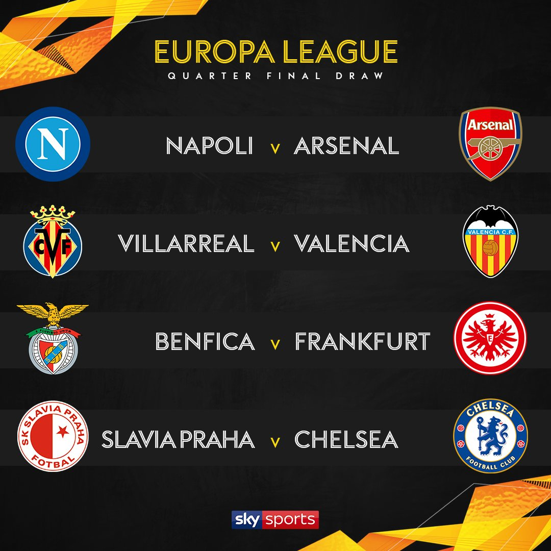 欧联杯四分之一决赛已经揭晓。具体的比赛安排如下(前面的队伍先抽签,先打后客):
